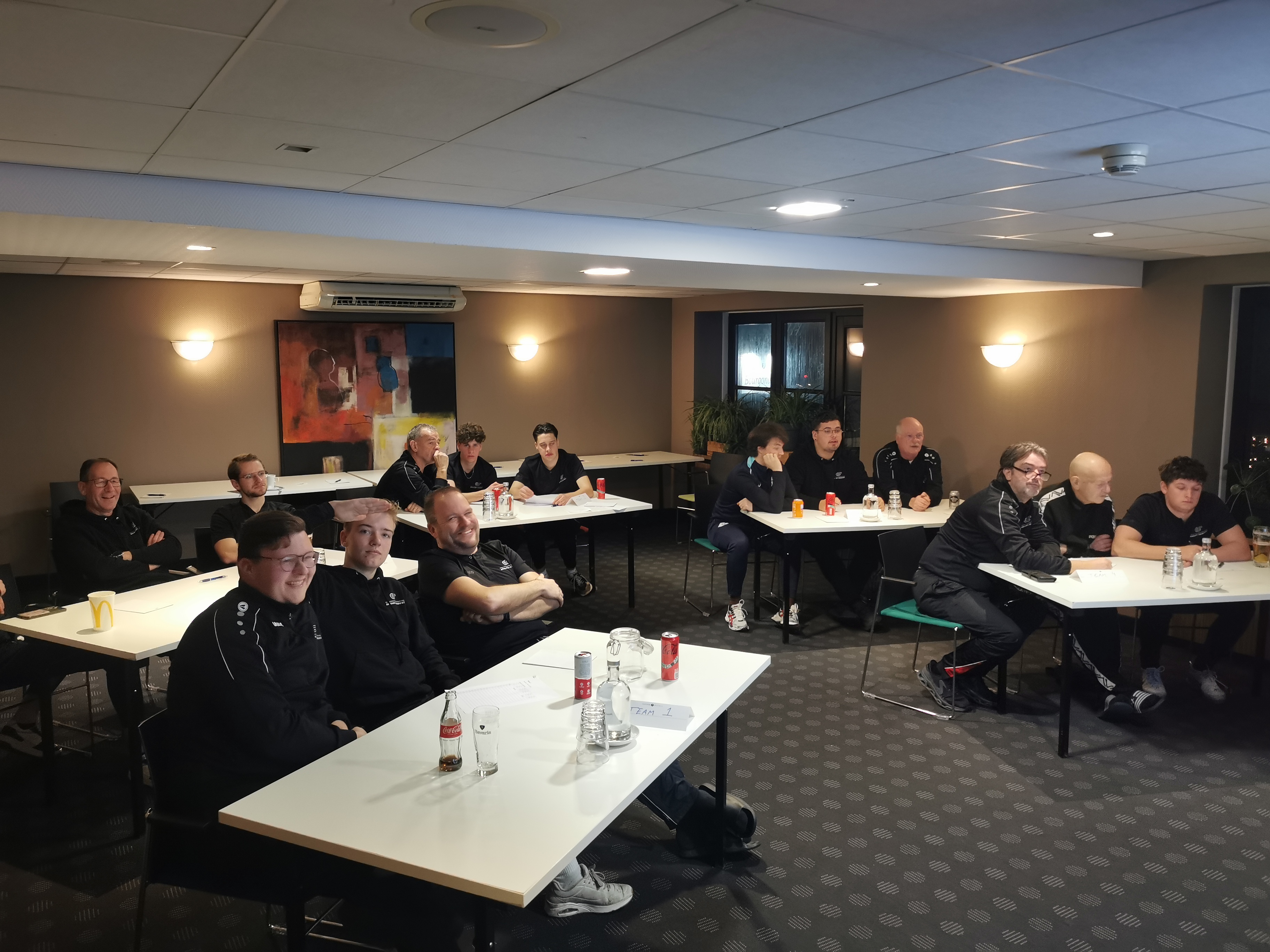 Waar was het nu dan te doen? In Fletcher Hotel-Restaurant Jagershorst-Eindhoven. Hierover waren zo goed als alleen maar pluspunten te melden: van het ontbijt tot het diner en van de lunch tot de bittergarnituur. De kamers mochten er ook zijn en het personeel verdient eveneens een pluim. Hoe laat we het ook op de vrijdag- en zaterdagavond (lees: nacht) maakten, het mocht allemaal. We hebben ons dan ook netjes gedragen, al zou dat logisch moeten zijn wanneer je ergens te gast bent.