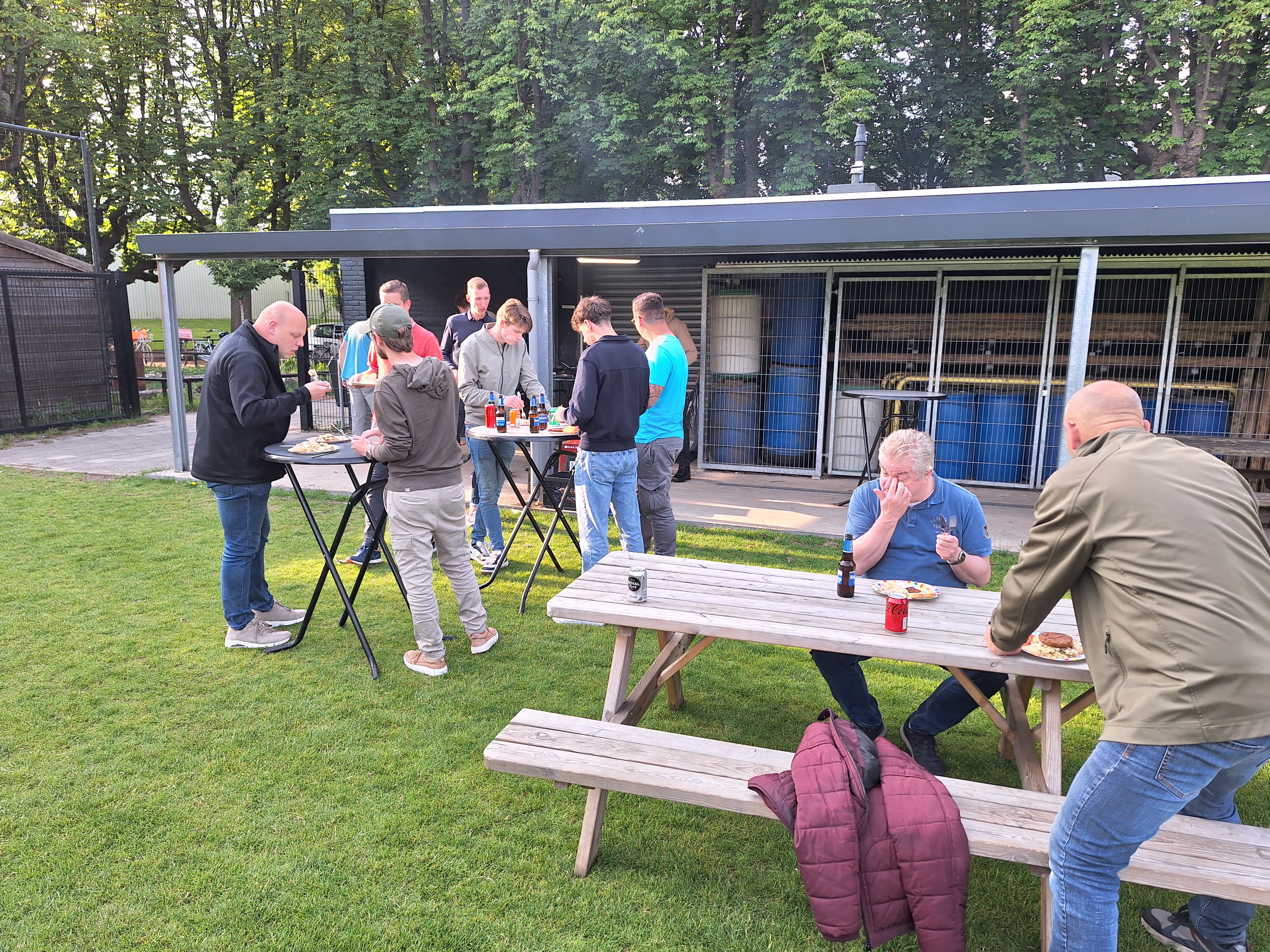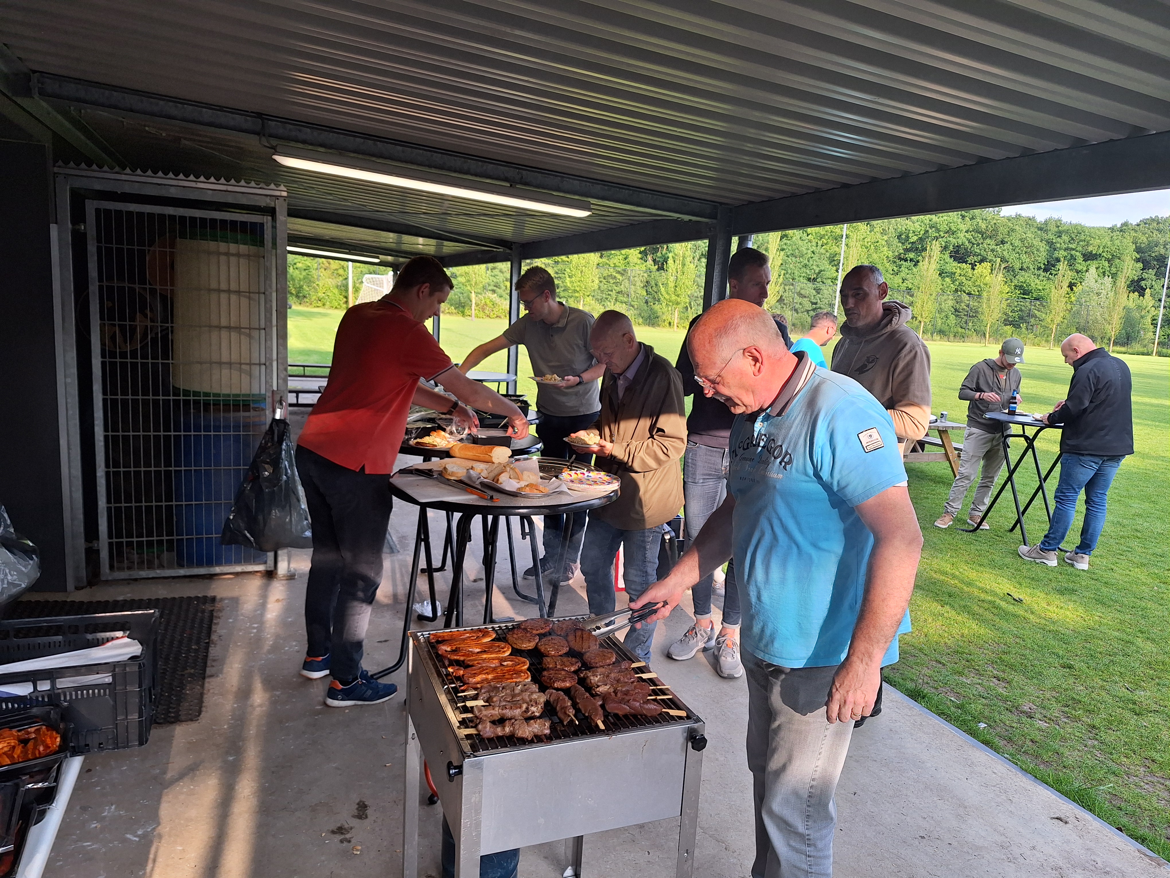 Maar de traditie houden we terecht in ere. Het blijft leuk om met enkele tientallen leden onder het genot van een stukje vlees, salades, sausjes en een drankje bij te kletsen. Over het afgelopen voetbaljaar en, voor sommigen, wat nog langer geleden is.
