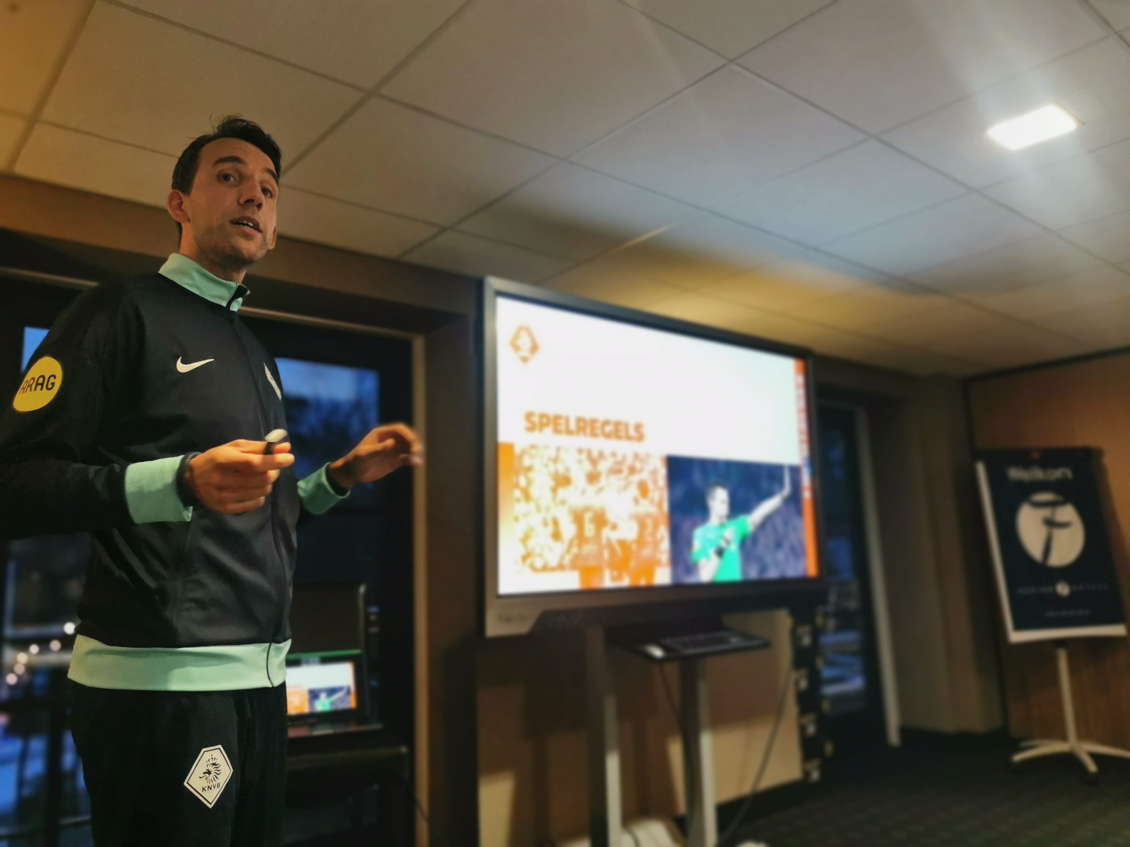 Vervolgens was het betaald-voetbalscheidsrechter Clay Ruperti, die ons bijpraatte over zijn loopbaan als arbiter én vooral zijn inbreng als VAR-functionaris. Ook al zo’n heerlijke spreker.